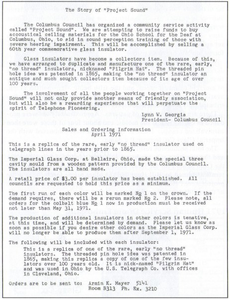 Hat". The third page talks about the Columbus Council and "Project Sound". The sale