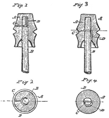 method, Stearns had the peg (C) embedded in the pin. Imagine, if you will, a