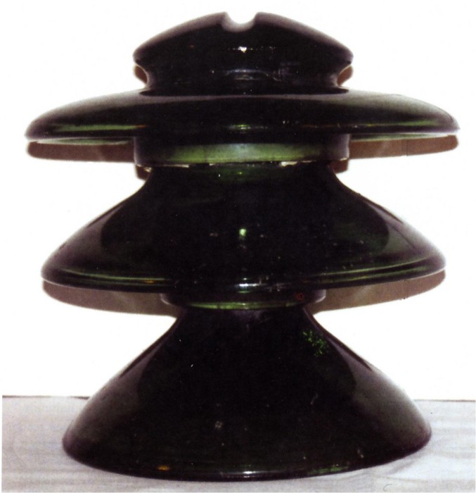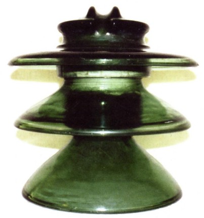 insulator in dark green glass that had a smoothly rounded top. It had been given