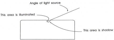 impression and cast a shadow off the edges nearest to the light source. I use