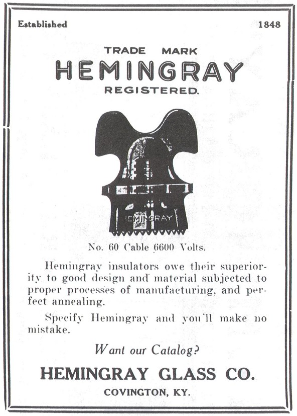 other Hemingray advertising can be found in Insulators: A History and Guide to