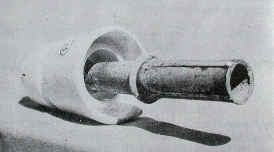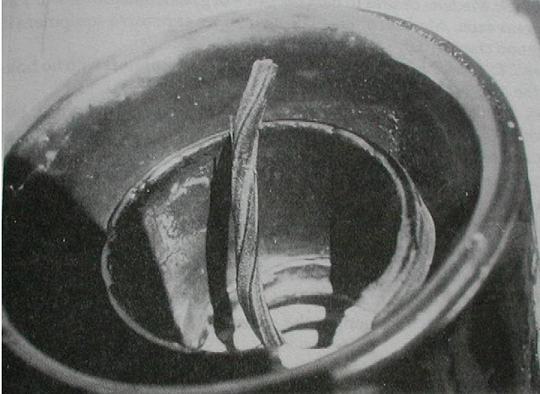 inside of the metal pin. This wire was fastened to the insulator by a lead cap