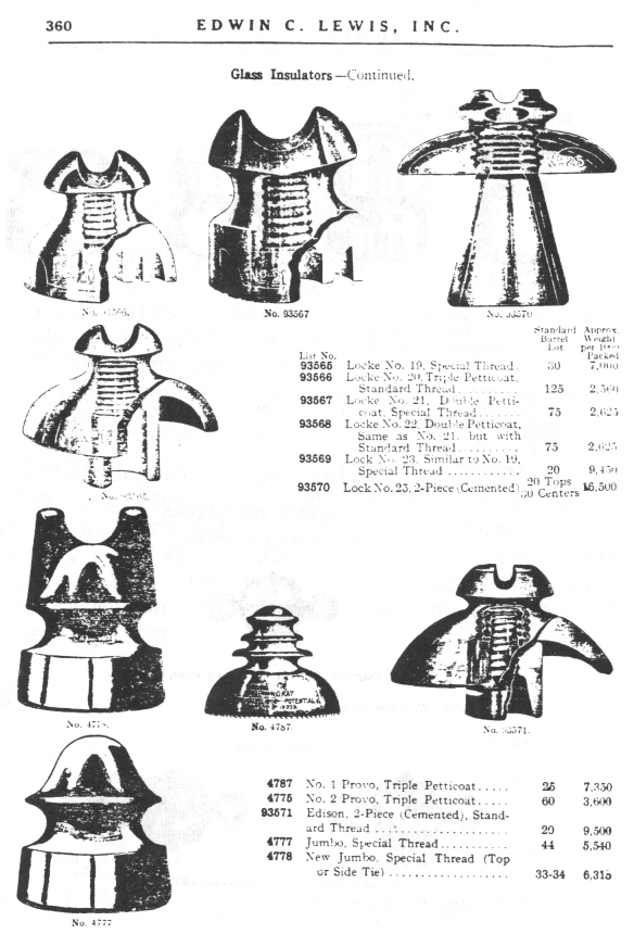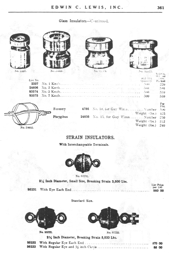 Included in the catalogue were several pages of porcelain insulators, mainly
