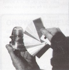 mixed amounts of color that make up each slide. A velcro/ leather folder