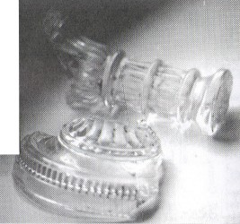 (Lower Left) A Simple Solid Stem clear glass lamp with the typical "oil