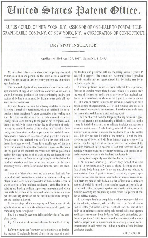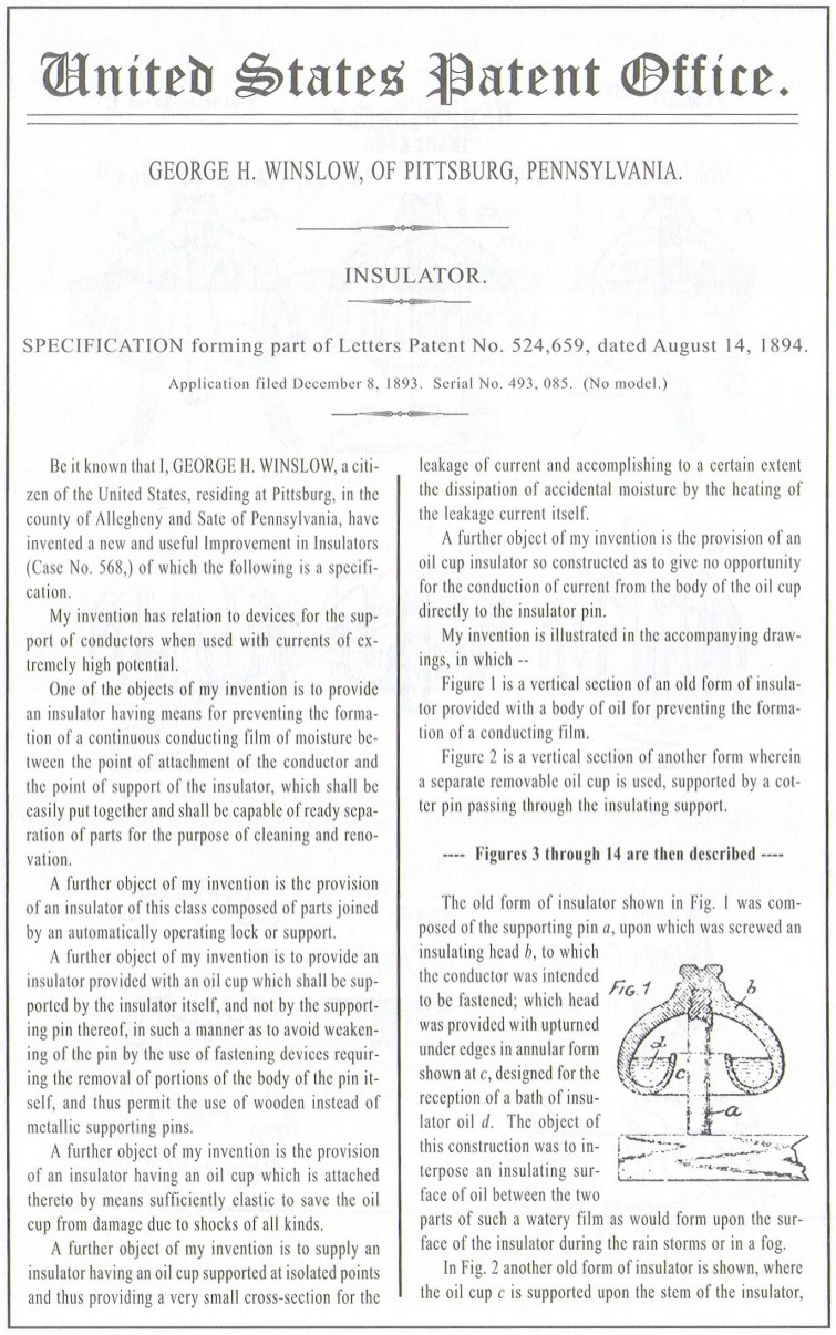 "Collection of Insulator Patents - Issued by the US Patent Office 1881-1885" compiled by Aubrey and Penelope Branham in 1972 and spotted the