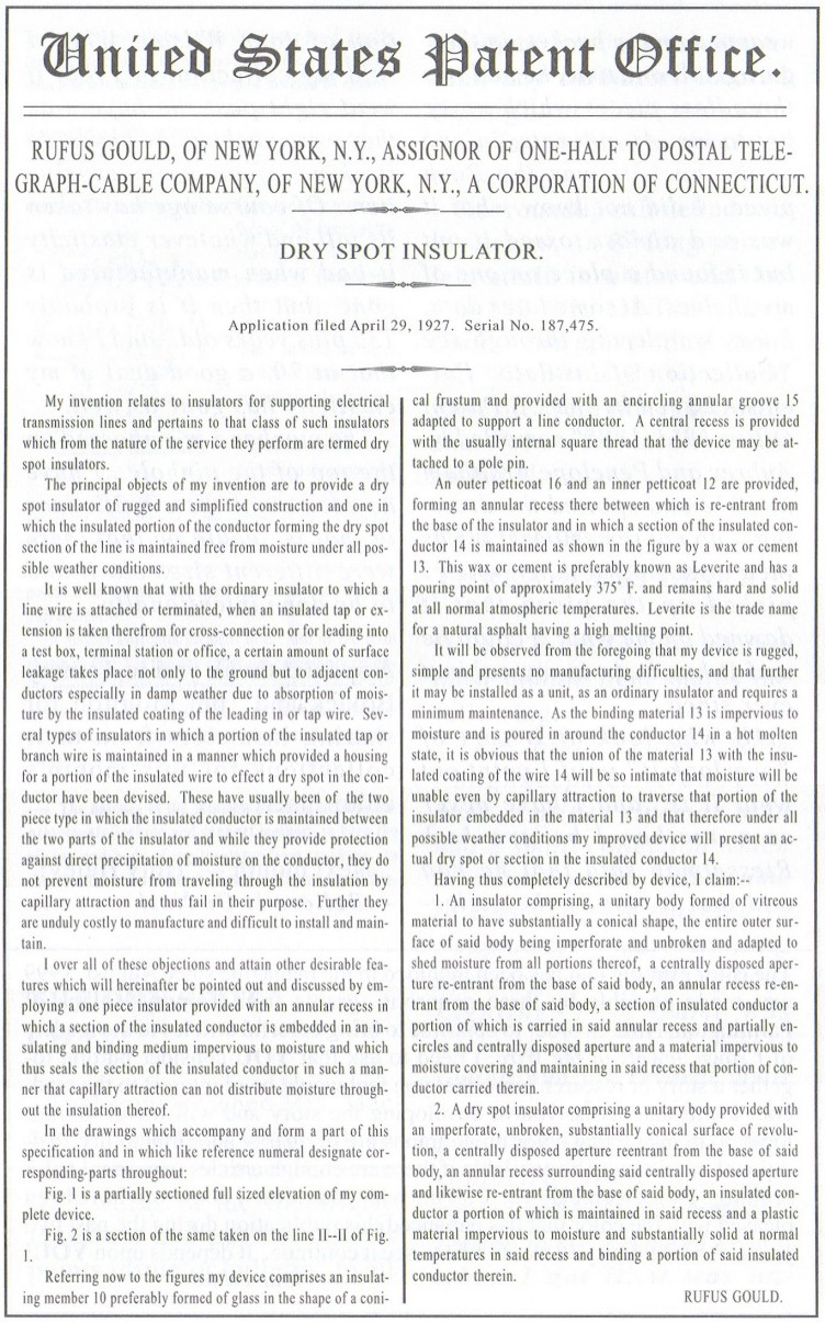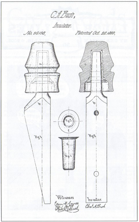Being pliable, the rubber would conform to most irregularities found in size of shape of early threadless insulators.
