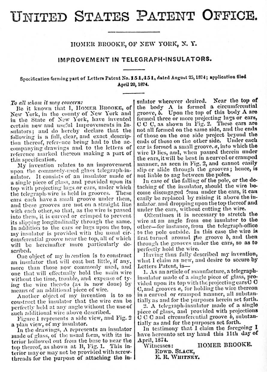 Brooke's Insulator for his own manufacture.