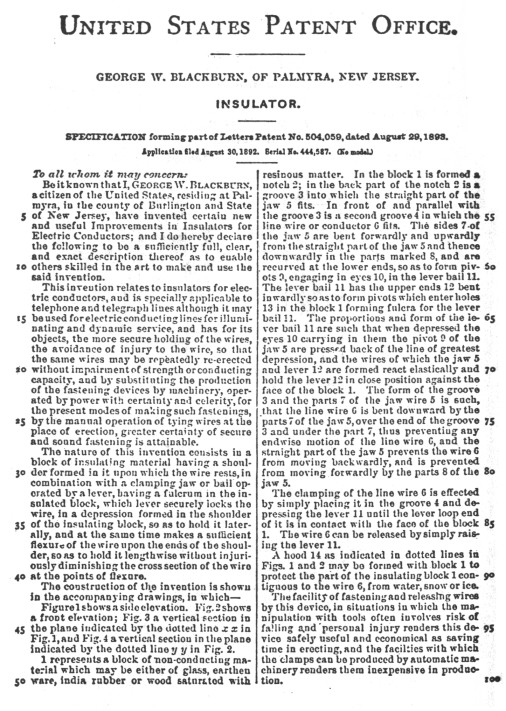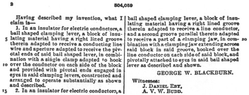 about another of the very unusual insulators, the Blackburn patent.