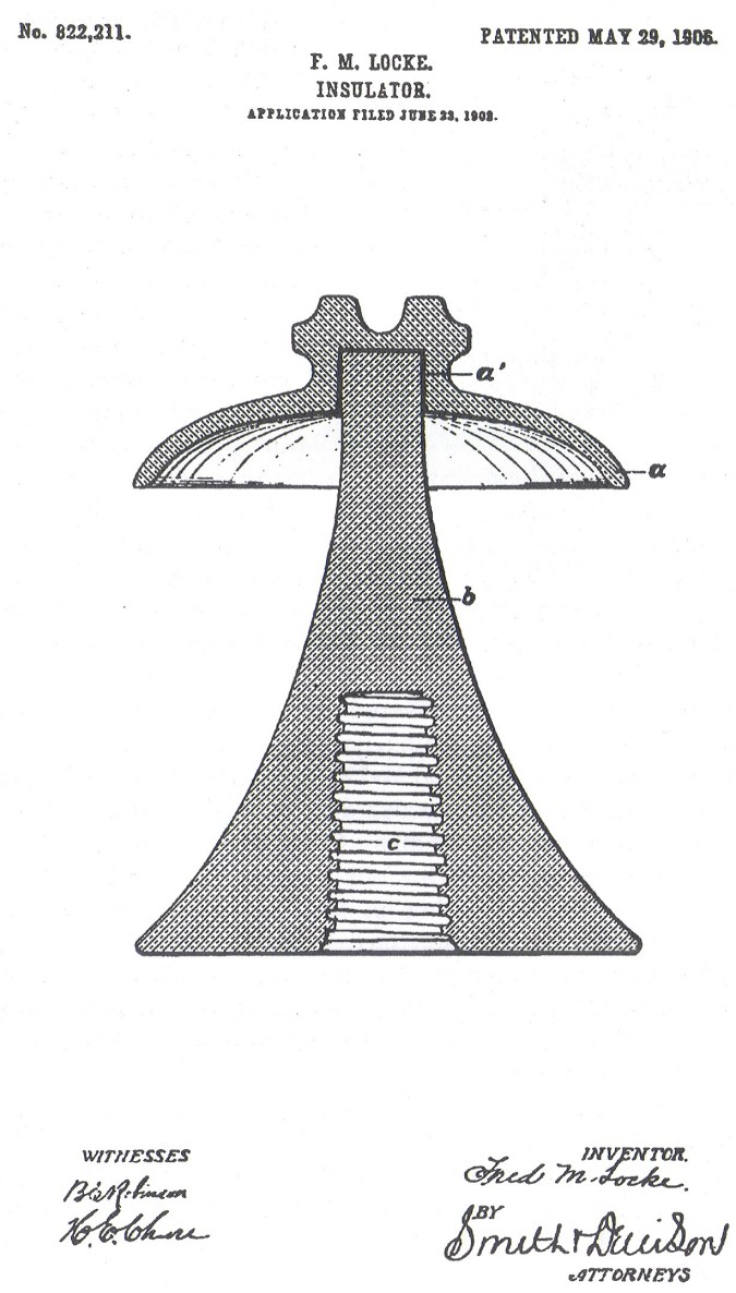 patent (No. 761,760 granted on 6-7-1904) for the lily-shell multipart insulator