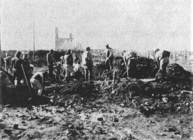 behold, at about the centerpoint of the trench emerged a number of crude,