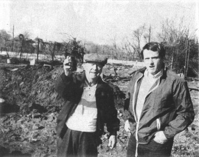 Larry Veneziano (in dark jacket) watches the "old bucket and