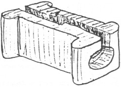 inches from the end. With a chisel the wood about the auger hole is cut out,