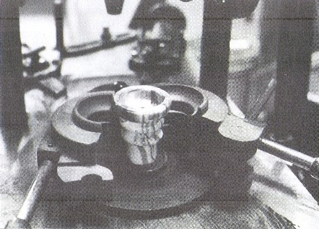 Mr. Miller's mould consisted of two hinged halves, a base ring, and a