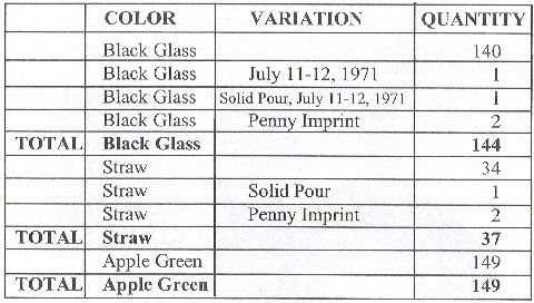 Apple Green, Black Glass and Straw colors for 1970 and 1971.