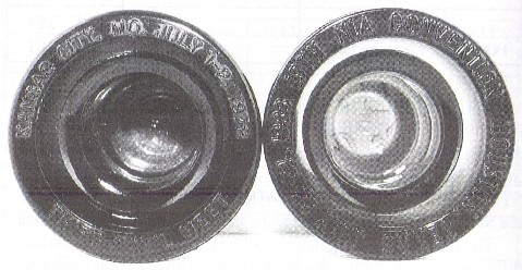 pressed into orange and yellow colors on the edges of the glass commemoratives.)