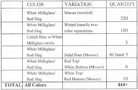 mould. (In 1984 when white milkglass and transparent red were used there was a