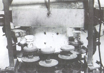 Perfect units rest momentarily on an asbestos screening. Two hot AIR JETS
