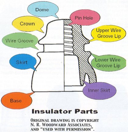 Like a bottle's neck or crock's lip, an insulator has various areas that are