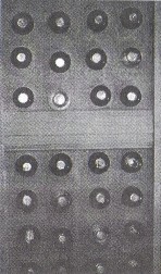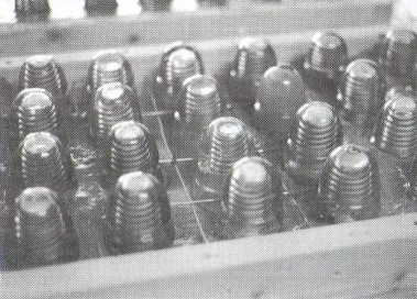 insulators in four rows of eight. Cement was poured in around the insulators and