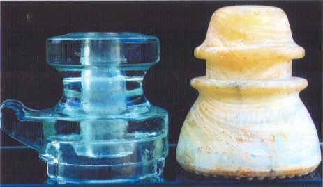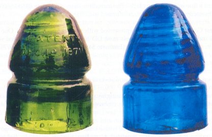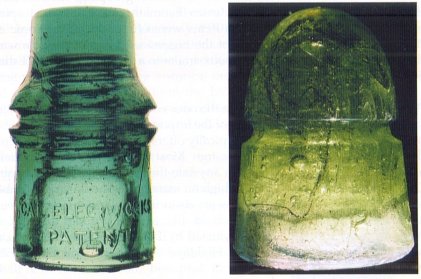Green is a rarely seen color in CD 130 Cal. Elec. Works insulators (above,