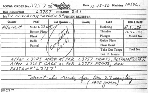 12/12/50, (FIGURE 3) indicates that 1400 units were to be produced. Bear in