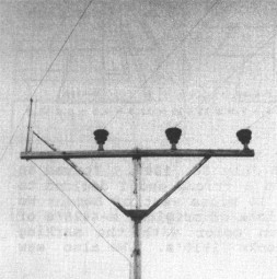 between the two circuits on a higher steel mast.