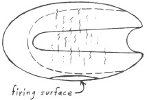 cracks around the center and is about 3" by 5-1/4" size (sketch