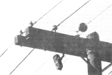 the crossarms to secure the jumper wires. Less obvious are the old angle-iron