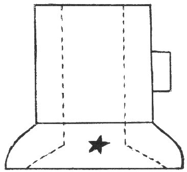 2-5/16" at base and is 2-3/16" high. It is embossed with one 5 point