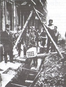 The lead lining of the trough is then connected to one pole of a powerful electric