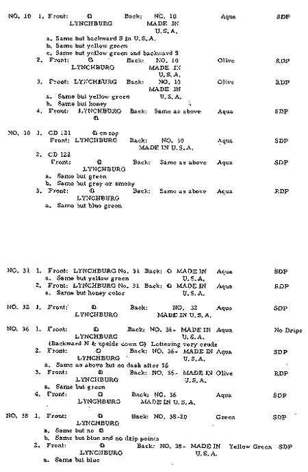 Press of Premier, Houston, Texas) says, “. . . . it seems certain that no plant operating for such a short total period of time has ever produced so many insulators, or distributed them so widely.” The same might be said of the number of varieties and shades of colors. My study of LYNCHBURG insulators is concerned solely with styles, embossings and colors that I have seen or read about. In all, I have recorded 13 styles and an infinite number of embossings and color differences.