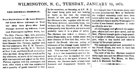 morning, January 12, 1874, on page 3 in the "By Telegraph" column