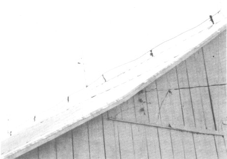 downward, and disappearing beneath the barn roof. We made a careful search of