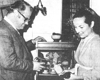 Ducro hold two of the more unusual Items. Mr. Ducro examines a white porcelain insulator brought back from