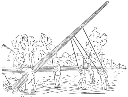 men to plant a pole in the ground. Eight or ten poles are about as many as can