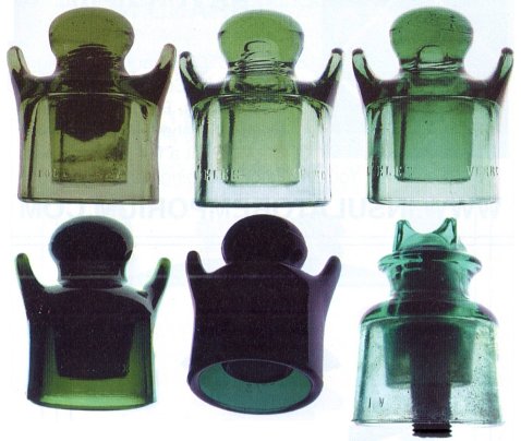 in acid to remove the cement and pin. Insulators listed as near mint may have