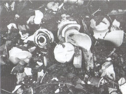 piles and piles of broken and smashed gray cross-tops, M-3890's made by both New