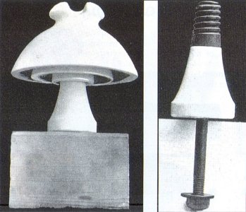 insulator, fused with glaze, designed to carry from 20,000 to 35,000 volts, and
