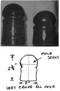 inches wide. Color is amber black glass; very crude and has a million tiny