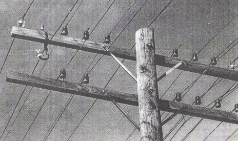 former Missouri Pacific tracks with the lines and insulators still in use.
