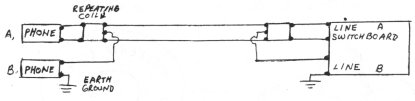 receive; phone B uses one wire and the earth to transmit and receive.