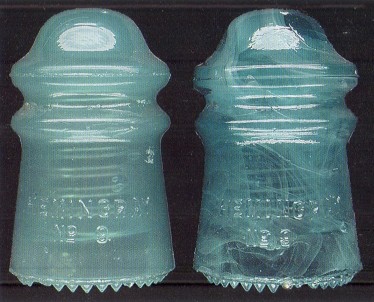 squeezing of the glass in the mold. Several styles of Brookfield insulators were