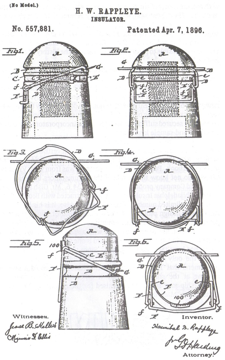 Rappleye "...his Letter of Patent for Insulators #557,881 and in payment