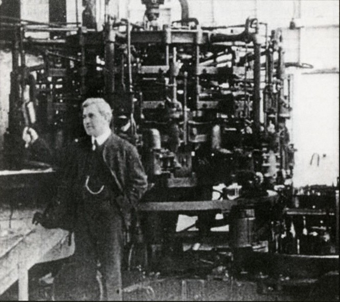 Inventor Michael Owens with his famous automatic