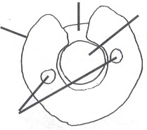 could exit on either side of the pinhole. Bits of stranded wire used in its