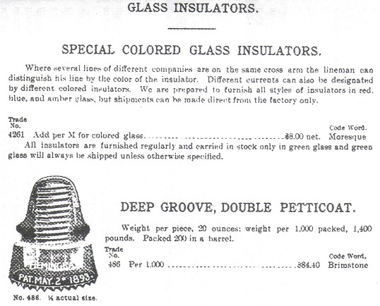 touted his insulators with a bold “PETTICOAT” on one side. On the other end