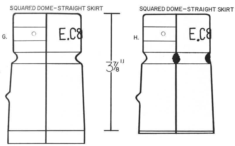 the top of the dome. All four have the same rounded mold dot. EC&M's F., G.,