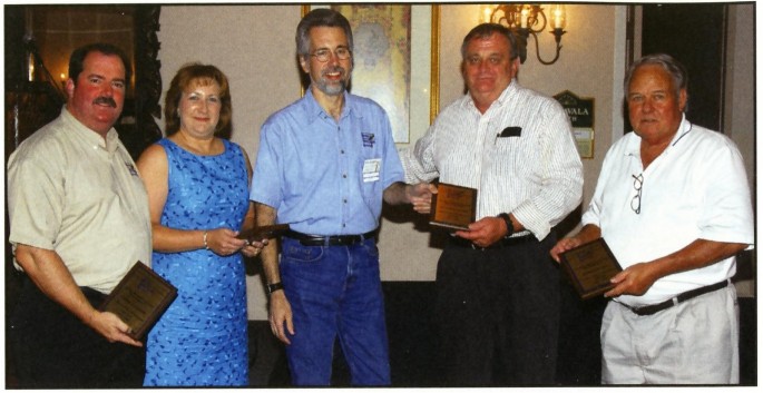 Incoming NIA president Kevin Jacobson (center) congratulates 2006 Show Hosts