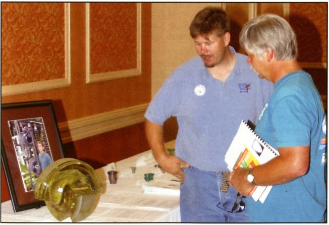 Republic. Brian Reicker (left) shows his insulator off to Carl Scott, putting